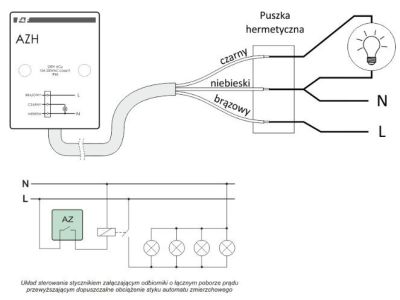 Stopień ochrony IP65 - hermetyczny Zasilanie 24 V. Maksymalne obciążenie 10 A. Hermetyczny. Element światłoczuły wbudowany.