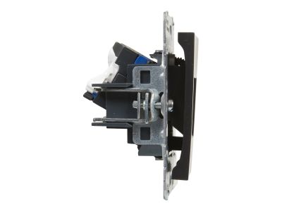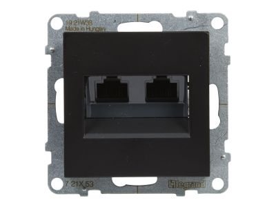 Gniazdo 2XRJ45/kat 6 UTP. Gniazdo umożliwia podłączenie z Internetem komputera, drukarki itp. Mechanizm wymaga dodania ramki. Kolor Czarny .