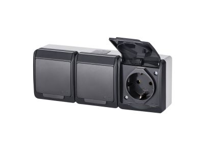 Gniazdo n/t potrójne 3x2P+Z Schuko IP44, antracyt, Hermes
