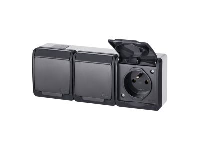 Gniazdo n/t potrójne z uziemieniem, IP44, antracyt, Hermes