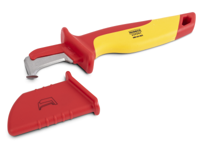 Profesjonalny nóż elektrotechniczny z prostym ostrzem, przeznaczony do bezpiecznego cięcia i zdejmowania izolacji. Wyposażony w certyfikowaną izolację VDE, ergonomiczną rękojeść oraz precyzyjne ostrza ze stali nierdzewnej, zapewnia komfort i ochronę podczas pracy przy instalacjach elektrycznych.