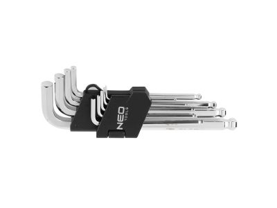 Zestaw kluczy sześciokątnych NEO (09-525) wykonany ze stali chromowo-wanadowej, zgodnie z normą DIN 911. Zestaw zawiera 9 kluczy w rozmiarze od 1.5 do 10 mm. Kuliste końcówki o kącie roboczym do 30° zwiększają funkcjonalność narzędzi. Marka NEO spełnia oczekiwania profesjonalistów.