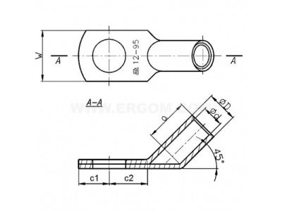 Końcówka rurowa kątowa K45R 10/12 przekrój: 10mm2, otwór pod śrubę M12 | E11KM-01050100502 Ergom