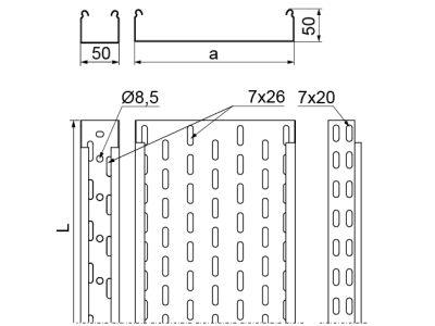 Długość 3 m.Alternatywny kod produktu: KCD50H50/3 NProwadzenie trasy kablowej. System bezłącznikowy. Opcja łączenia koryt poprzez wsunięcie jedno w drugie i skręcenie.