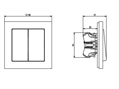 Łącznik wyposażony w dwa klawisze, umożliwiający łączenie dwóch niezależnych obwodów oświetleniowych ze wspólnego (jedno) zasilania. Używany najczęściej do załączania żyrandoli (podzielonych na dwie strefy). Do kompletu wymagana ramka. Można stosować do systemów ramkowych wielokrotnych.
