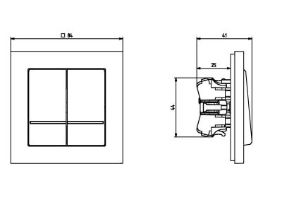 Łącznik wyposażony w dwa klawisze, umożliwiający łączenie dwóch niezależnych obwodów oświetleniowych ze wspólnego (jedno) zasilania. Używany najczęściej do załączania żyrandoli (podzielonych na dwie strefy). Do kompletu wymagana ramka. Można stosować do systemów ramkowych wielokrotnych.