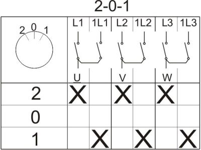 Łącznik krzywkowy 2-0-1 3P 25A IP65 Łuk 25-72