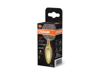 Lampy LED , edycja vintage, klasyczny kształt żarówki świecowej | Lampy LED dla napięcia sieciowego | Moc nominalna: 2,5 W | Napięcie znamionowe: 220…240 V | Temperatura barwowa: 2400 K | Strumień świetlny: 220 lm | Kąt rozsyłu światła: 300 ° | Długość (włączając okrągłe oprawy): 100.00 | Szerokość (włączając okrągłe oprawy): 35.00 | Trwałość L90/B10 @ 25 °C: 15000 h | Normy : CE / EAC | Gwarancja: 3 lata