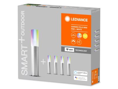 Dekoracyjne słupki świetlne do użytku zewnętrznego z technologią WiFi. Cechy produktu: Sterowanie za pomocą aplikacji LEDVANCE SMART + WiFi (z co najmniej Androidem 4.4 lub iOS 9.0). Możliwość sterowania za pomocą głosu: Asystent Google lub Amazon Alexa. Sterowanie kolorami RGB. Ściemnialne. Temperatura barwowa: 3000 K (Warm White - ciepłobiała). Stopień ochrony (instalacja na słupku): IP65. Stopień ochrony (zasilacz): IP44. Rozszerzenie do maksymalnie 8 biegunów. Korzyści ze stosowania produktu: Łatwa i szybka instalacja. Barwne oświetlenie ogrodowe i inteligentne opcje sterowania. Obszar zastosowań: Ogrody, balkony oraz inne miejsca na zewnątrz budynków. Wyposażenie / Akcesoria: Zasilacz sieciowy dostarczany wyłącznie w zestawie podstawowym. Sterowanie za pomocą aplikacji lub głosu wymaga kompatybilnego systemu sterowania domem inteligentnym. Do sterowania za pomocą aplikacji LEDVANCE SMART + WiFi wymagany jest smartfon lub tablet