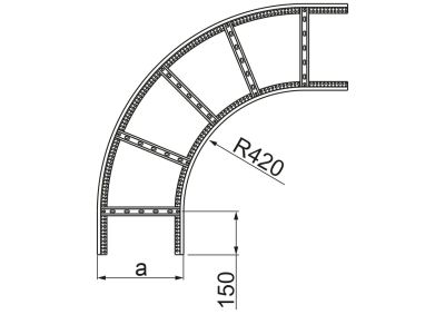 Łuk drabinki 90st. LDC400H100N, gr.blachy 2,0mm | 499640 Baks