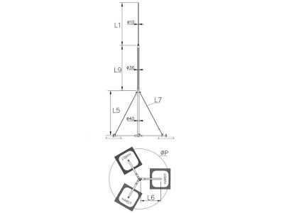 Maszt odgromowy wolnostojący izolowany do PW na trójnogu H=5000mm