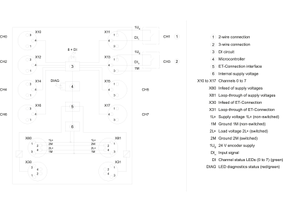 Alternatywny kod produktu: 6ES71415BF000BA0SIMATIC ET 200AL, DI 8x 24 V DC, 8XM8, Degree of protection IP67 SIMATIC ET 200AL is a modular, distributed I/O system with compact I/O modules in IP65/67. With the I/O system, Siemens offers you a space-saving solution. Your space requirements are kept to a minimum because SIMATIC ET 200AL can easily be mounted on the machine or assembly line in any position thanks to its small width of 30 mm and low weight of 145 g. The system is not only space-saving but can also be used at temperatures between -25 °C and +55 °C due to its extraordinarily rugged housing, which is splashproof, oil-tight and dust-tight. You can put the SIMATIC ET 200AL into operation immediately due to its hassle-free and fast configuration. This can be done in an uncomplicated way because of the CAx-compatible labeling of all interfaces via the TIA Portal. The color assignment of the cables to the interfaces and simple wiring are ensured by a unique color-coded identification system. Siemens guarantees a future-proof investment due to the inclusion of innovative and long-life automation products. By already using tomorrow's technologies today, Siemens is redefining market standards. They are available as digital and analog input and output modules and as mixed modules (digital). The sensors are connected with the M8 or M12 connection system. The modules can be optionally connected to PROFINET or PROFIBUS or integrated into SIMATIC ET 200SP.