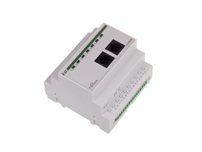 Alternatywny kod produktu: mH-RGB / 10Moduł RGB przystosowany jest do sterowania niskonapięciowych (12V) źródeł światła LED na zasadzie ustawiania jasności i barwy oświetlenia. Do modułu należy podłączyć wielobarwne źródła RGB (np. paski, węże RGB) i regulować jasność oraz barwę światła. W przypadku źródeł światła RGB należy stosować źródła ze stałym plusem zasilania (sterowanie minusem). Moduł posiada dwa wejścia lokalne: jedno do podłączenia przycisku działającego analogicznie jak w ściemniaczach (krótkie przyciśnięcie włącza-wyłącza, dłuższe przytrzymanie ściemnia-rozjaśnia) i drugie serwisowe do zmiany barwy światła bez udziału panela dotykowego. Jedno wyjście rozumiane jest jako, 3 kanały do obsługi pasków lub węży RGB. Za pomocą panela dotykowego możliwe jest pełne sterowanie jasnością, barwą oraz czasami rozjaśniania-ściemniania. Moduł wymaga podłączenia niezależnego zasilacza 12V DC o mocy dobranej do podłączonego obciążenia LED. Bardzo istotna jest poprawna polaryzacja zasilania. Odwrotne podłączenie grozi uszkodzeniem podłączonego źródła światła (moduł jest zabezpieczony). Wyróżniamy dwa typy modułów RGB: model starszy z 2012 roku i nowszy model z 2013 roku. Nowszy model ma wprowadzony dodatkowy przekaźnik załączający zasilacz 12V. Generalna zasada działania opiera się na fakcie, że oświetlenie typu RGB nie jest załączone na stałe i nie ma powodu aby zasilacz 12V był stale załączony. Moduł jest zasilany z zasilacza systemowego 24V, a zasilacz 12V jest załączany tylko jeżeli zachodzi taka potrzeba.