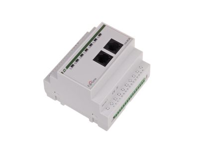 Alternatywny kod produktu: mH-RGB / 2Moduł RGB przystosowany jest do sterowania niskonapięciowych (12V) źródeł światła LED na zasadzie ustawiania jasności i barwy oświetlenia. Do modułu należy podłączyć wielobarwne źródła RGB (np. paski, węże RGB) i regulować jasność oraz barwę światła. W przypadku źródeł światła RGB należy stosować źródła ze stałym plusem zasilania (sterowanie minusem). Moduł posiada dwa wejścia lokalne: jedno do podłączenia przycisku działającego analogicznie jak w ściemniaczach (krótkie przyciśnięcie włącza-wyłącza, dłuższe przytrzymanie ściemnia-rozjaśnia) i drugie serwisowe do zmiany barwy światła bez udziału panela dotykowego. Jedno wyjście rozumiane jest jako, 3 kanały do obsługi pasków lub węży RGB. Za pomocą panela dotykowego możliwe jest pełne sterowanie jasnością, barwą oraz czasami rozjaśniania-ściemniania. Moduł wymaga podłączenia niezależnego zasilacza 12V DC o mocy dobranej do podłączonego obciążenia LED. Bardzo istotna jest poprawna polaryzacja zasilania. Odwrotne podłączenie grozi uszkodzeniem podłączonego źródła światła (moduł jest zabezpieczony). Wyróżniamy dwa typy modułów RGB: model starszy z 2012 roku i nowszy model z 2013 roku. Nowszy model ma wprowadzony dodatkowy przekaźnik załączający zasilacz 12V. Generalna zasada działania opiera się na fakcie, że oświetlenie typu RGB nie jest załączone na stałe i nie ma powodu aby zasilacz 12V był stale załączony. Moduł jest zasilany z zasilacza systemowego 24V, a zasilacz 12V jest załączany tylko jeżeli zachodzi taka potrzeba.