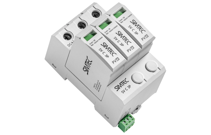 Alternatywny kod produktu: V25-B+C 3-PH900Ogranicznik przepięć 3-biegunowy do systemów PV, Typ 1+2. Maksymalne napięcię pracy DC: 900V. Zdolność odprowadzania prądu udarowego 7kA (10/350) i 50kA (8/20) na biegun.