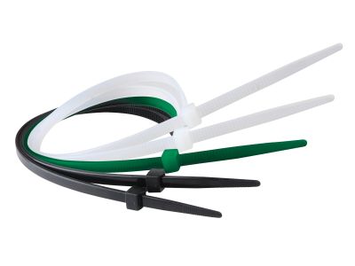 Opakowanie zawiera 100 szt.Opaski kablowe do wiązania, unieruchamiania i spajania: okablowań elektrycznych, zamocowań nieotwieralnych. Materiał - poliamid 66, kolor naturalny - do użytku wewnętrznego, kolor czarny - do użytku zewnętrznego (odporny na promieniowanie UV), kolor zielony - do użytku zewnętrznego (odporny na długotrwałe promieniowanie UV). Temperatura zastosowania -40°C ÷ +85°C, Temperatura montażu- -10°C ÷ +60°C. Odporność na działanie olei, tłuszczy, środków piorących, produktów rafineryjnych, rozpuszczalników chlorowych i alkoholi