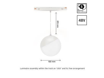 Oprawa LED GLOBE P kula zwis na szyn. 100 (850mm kabel) 5W 165st biała 5 lat gw. CASAMBI system SHI