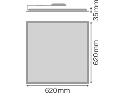 Kwadratowe panelowe oprawy oświetleniowe, przeznaczone do montażu w zabudowie, z redukcją olśnienia, 625 x 625 mm Cechy produktu: Trwałość (L70/B50): do 50 tys godzin (przy 25C) Rama z wytłaczanego aluminium Dyfuzor z polistyrenu Korzyści ze stosowania produktu: Oprawy niska cena, wysoka jakość Dobra redukcja olśnienia (UGR 19) Niewielkie tętnienie światła dzięki specjalnemu statecznikowi elektronicznemu Oszczędność energii dzięki wysokiej skuteczności świetlnej systemu: do 100 lm/W Zewnętrzny zasilacz zwiększa uniwersalność i zapewnia łatwą instalację Funkcja oświetlenia awaryjnego dzięki układowi konwersji na oświetlenie awaryjne firmy LEDVANCE Obszar zastosowań: Bezpośredni zamiennik świetlówkowych opraw oświetleniowych Biura, sale konferencyjne Recepcje, hole, korytarze, windy Odpowiednie oprawy do zabudowy w suficie, moduł 625 x 625 mm Wyposażenie / Akcesoria: Dostępne są akcesoria do kilku typów montażu Stateczniki zewnętrzne w zestawie Wsporniki zabezpieczające w zestawie