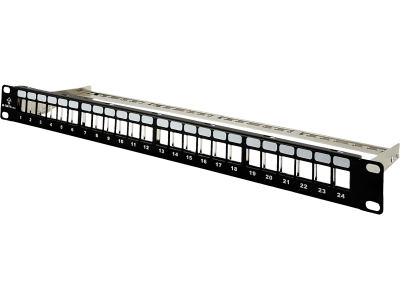 Ten produkt nie jest wyposażony w złącza transmisyjne co umożliwia dowolną konfigurację przez użytkownika, poprzez zastosowanie odpowiednich modułów RJ45 typu Keystone Jack tworząc połączenia wykorzystujące kable miedziane (kat. 5e, 6, 6A, 8.2), ale również umożliwia montaż w tym samym panelu adapterów światłowodowych. Puste miejsca można wypełnić zaślepkami w formacie keystone i wykorzystać je w późniejszym czasie, wraz z rozwojem infrastruktury sieciowej.