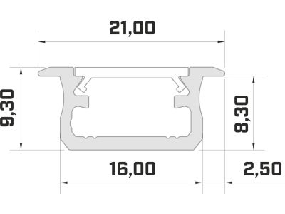 Profil aluminiowy LUMINES B do wpuszczania w wyfrezowane na powierzchni otwory.