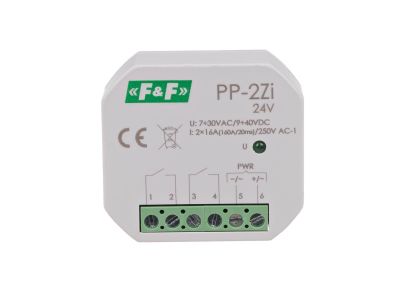 Przekaźnik elektromagnetyczny, 2Z 16A, montaż podtynkowy,U=7÷30VAC/9÷40VDC;2Z 16A (160A/20ms) | PP-2Z-LED-24V F&F