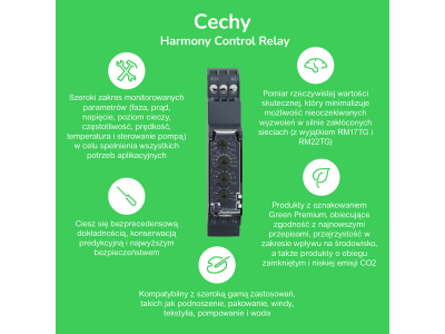 Ten wielofunkcyjny przekaźnik sterujący Zelio Control RM17-TT firmy Schneider Electric umożliwia monitorowanie obwodów zasilania w sieciach 3-fazowych. Ma zakres pomiarowy 183-582V. Jest montowany na szynie DIN.