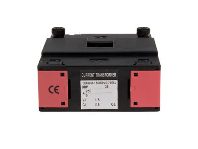 Stopień ochrony IP20 Z otwieranym rdzeniem. Przekładnia 250/5. Moc 1,5 VA.