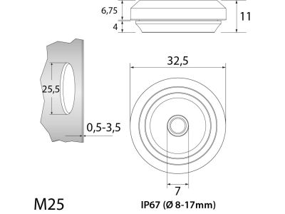 Przepust dławiący membranowy TSS M25 S IP67, szary RAL 7035 | 34.925 Elektro-Plast Opatówek