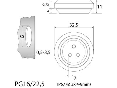 TSSM PG16 B przepust dławiący Multi Kolor biały Długość 32,5mm x Szerokość 32,5mm x Wysokość 11mm. Opakowanie 50szt. Służy do bezpiecznego i szczelnego wprowadzania przewodów do obudów elektrycznych lub automatyki, takich jak szafy sterownicze, rozdzielnice czy puszki instalacyjne.