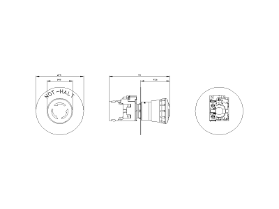 Przycisk grzybkowy awaryjny, 40mm, tekst „NOT-HALT”, bez samopowrotu, wymuszone blokowanie, czerwony