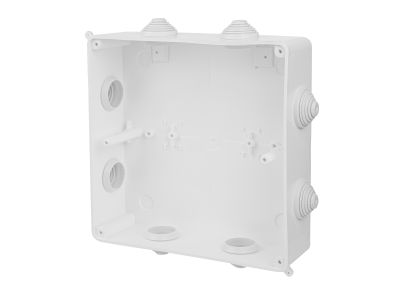 Puszka hermetyczna. Materiał PP. Kolor RAL 9003 (biały). NORMA: PN-IEC-60998-1:2006.Ilość wejść: 8-dławnic. Wymiary wewnętrzne: 188x188x53 mm, Wymiary: 196x196x78 mm.