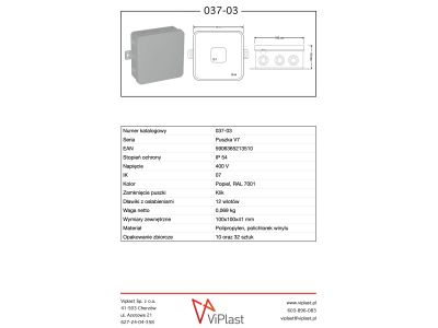 Puszka n/t V7 100x100x41mm IP54 12-wl. Klik z osłab. popiel elastyczna | 037-03 Viplast