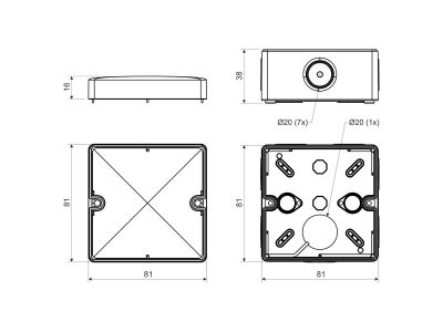 Skrzynka do trudnych miejsc - stopień ochrony IP 66. Skrzynka posiada wejścia uszczelnione membranami, pokrywa mocowana za pomocą stalowych śrub. Kolor czarny. Spełniają one wymagania dotyczące palności materiałów klasy A1-F .Puszka ze stopniem szczelności IP 66 przeznaczona jest do montażu w przestrzeni ach wewnętrznych i zewnętrznych o wysokiej wilgotności. Puszka mocowana jest na powierzchni (ściana, sufit) przy pomocy dwóch wkrętów, które podczas montażu przechodzą przez miękkie uszczelnienie nie naruszając stopnia szczelności. Wpusty dla kabli wyposażone są w materiał elastyczny - membranę, która po wprowadzeniu kabla uszczelnia otwór wlotowy. Przy usuwaniu całej membrany można zastosować rurkę elektroinstalacyjną ośrednicy 20 mm albo przepust z nakrętką M 20. Opakowanie zawiera także 2 szt. wkrętów dla zamocowania pokrywy puszki. Napięcie nominalne: 400 V Zakres temperatur pracy: T-25 - 60 °C
