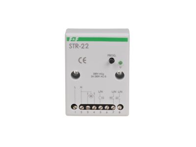 Sterownik STR przeznaczony jest do sterowania rolet (góra-dół) lub innych obiektów (np. bramy) napędzanych silnikiem elektrycznym jednofazowym prądu zmiennego za pomocą włączników chwilowych (np. dzwonkowych).