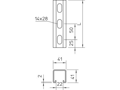 Szyna profilowa boczna perforacja, szczelina 22 41x41, St, FS MSL4141PP6000FS (6m) | 1123012 Obo Bettermann