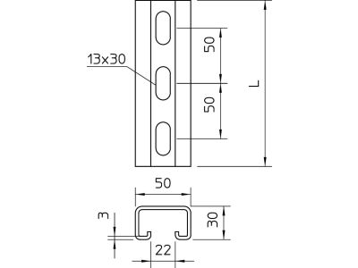 Szyna profilowa perforowana, szerokość szczeliny 22mm 50x30, St, FT MS5030P1000FT (1m) | 1121448 Obo Bettermann
