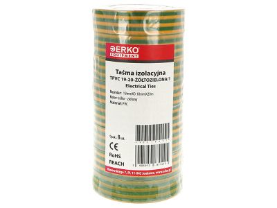 Taśma izolacyjna T PVC 19X20, żółto-zielona | TPVC_19-20-ZOLTOZIELONA/1 Erko