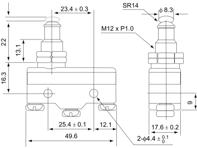 Wyłącznik krańcowy, z długim trzpieniem, ze zderzakiem 1×CO, 15A/250V AC, IP00 | LS15GQ-B Tracon