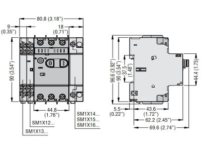 Wyłącznik silnikowy SM1P0650, sterowanie przyciskami 4-6,5A Icu=100kA przy 400V