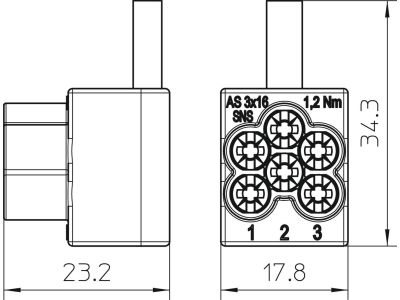 Złącze do ograniczników do łączenia przelotowego typu AS 3 x 16