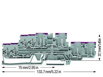 Złączka dwupiętrowa 4-przewodowa, 4-przewodowa/4-pinowa złączka przelotowa, szara | 870-138 Wago