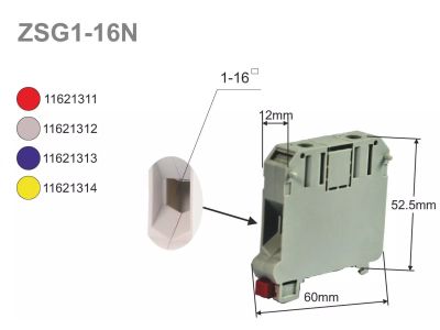Złączka szynowa gwintowa 16mm2, TS35 1-tor ZSG1-16.0Nz Nowa żółta