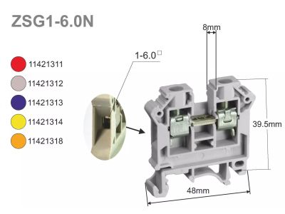 Opakowanie zbiorcze zawiera 50 szt.Napięcie znamionowe 800V Prąd znamionowy 41A. Przeznaczenie: do łączenia przewodów Al/Cu, montaż: TS 35, szer/wys/gł. 39,5x48x8mm